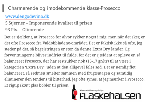 Prosecco Superiore med 5 stjerner, og adskillige priser der barer leverer varen!